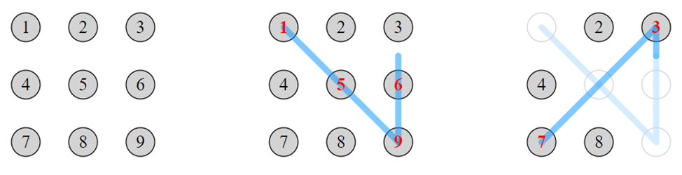 Сложность: ★★★★★★★★☆☆Это комбинаторная задача, замаскированная под вполне прикладной сценарий – графический пароль на сенсорном экране. Из-за правил “протягивания” через промежуточные точки и их последующего исчезновения задача быстро выходит за рамки простого перебора путей и превращается в сложный графовый процесс с динамически меняющимся состоянием. Для сетки 4 × 4 количество вариантов становится астрономическим, и решить задачу можно только за счет строгой формализации правил и эффективного перебора состояний.