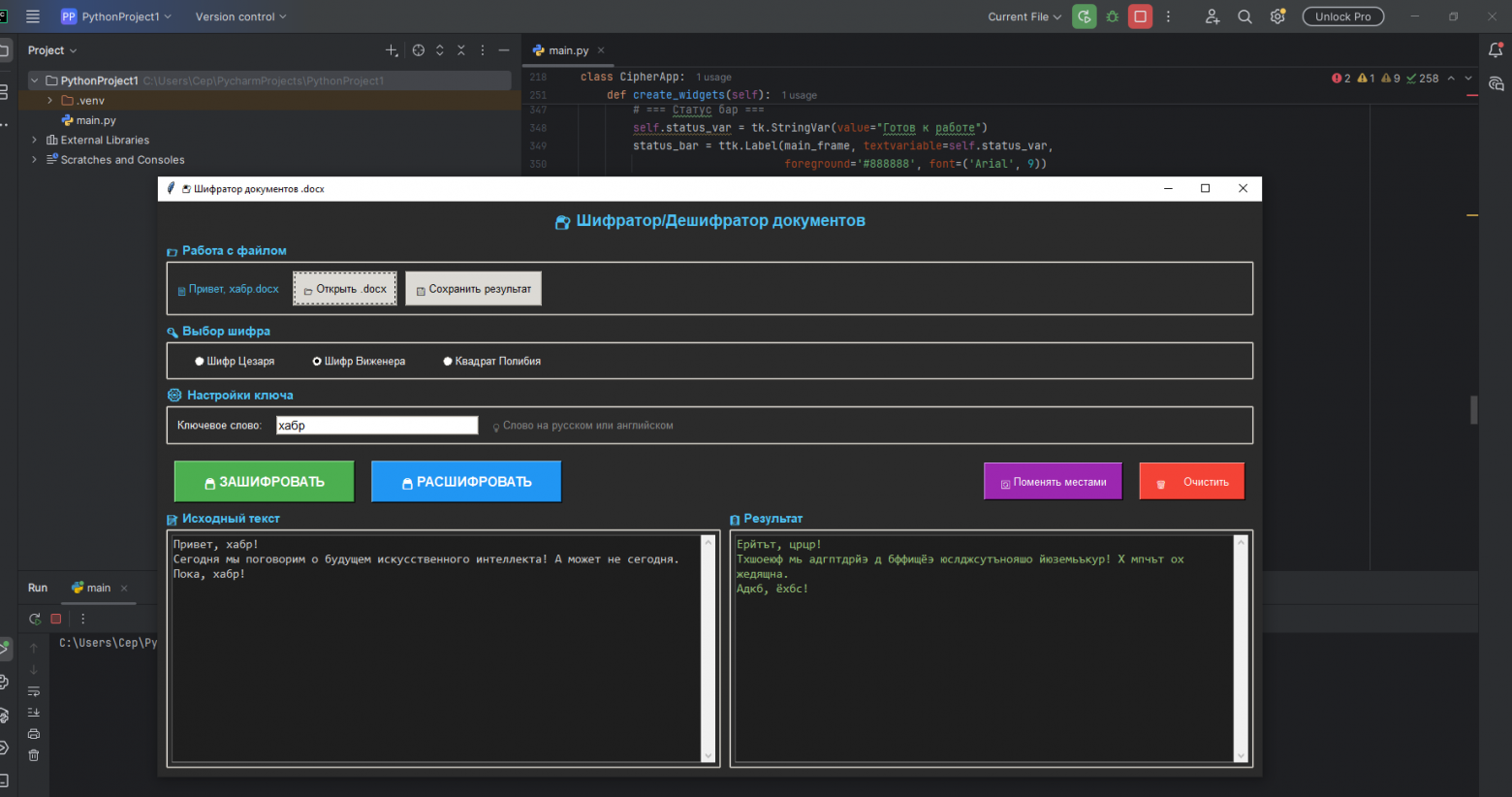Claude Opus 4.5 удивил и тут. Опять же, уже когда-то генерировал подобного рода задание. Только на этот раз мы увеличили количество уровней, добавили способности. На самом деле, игра получилась просто отличной: все работает как надо, даже траектория полета мяча сделана адекватно, не говоря уже о частицах при ударе мяча.В финале тестирования модель создаст шифратор и дешифратор для файлов Word.