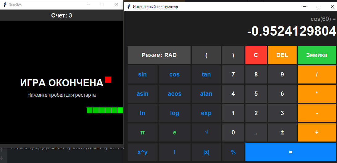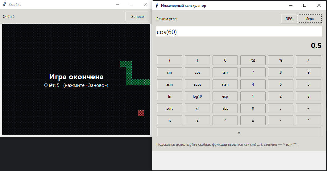 Как уже можно заметить, этот калькулятор тригонометрические величины измеряет в радианах. Опять же, нельзя сказать, плюс или минус это. Все же это будет зависеть от конкретной задачи. Дизайн самого калькулятора мне нравится больше, чем аналог от ChatGPT 5.2 Pro. Однако в калькуляторе выше змейка выглядит намного привлекательнее, чем тут. Максимальный балл в копилку модели, все же с заданием они справились обе.