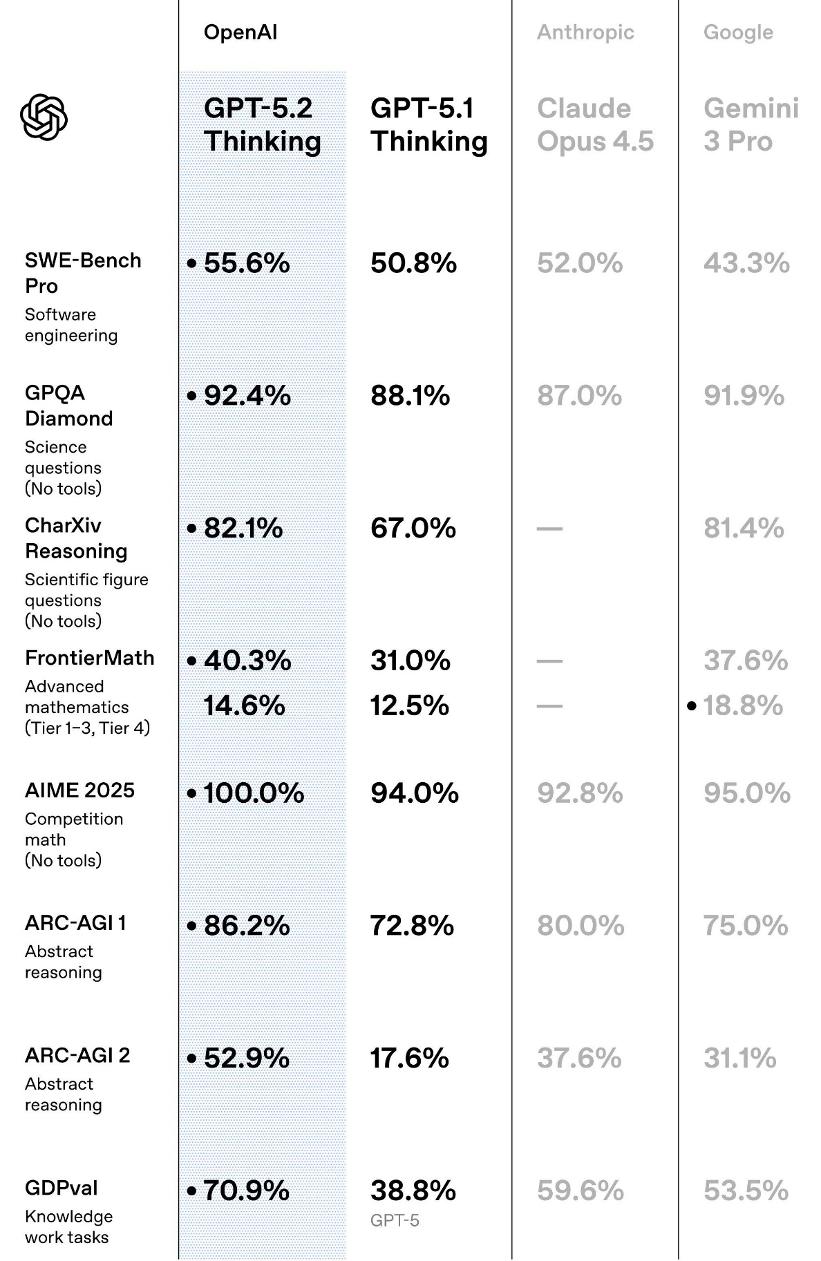 - Ну и конечно же, не стоит забывать, что: уже вышел ChatGPT 5.2, который вернул себе первое место!